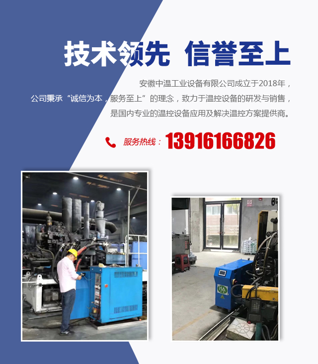 安徽中溫工業(yè)設(shè)備有限公司成立于2018年,公司秉承“誠信為本,服務(wù)至上”的理念,致力于溫控設(shè)備的研發(fā)與銷售,是國內(nèi)專業(yè)的溫控設(shè)備應(yīng)用及解決溫控方案提供商。